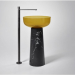 Cristalmood ist ein patentiertes Harz, das leicht, robust und transluzent ist. Es wird in verschiedenen Farben hergestellt und verleiht Waschbecken und Badewannen eine moderne, edle Optik.
